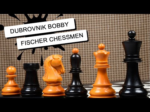 1950 Reproduced Dubrovnik Bobby Fischer Chessmen Version 3.0 in Ebonized & Antiqued boxwood - 3.7" King