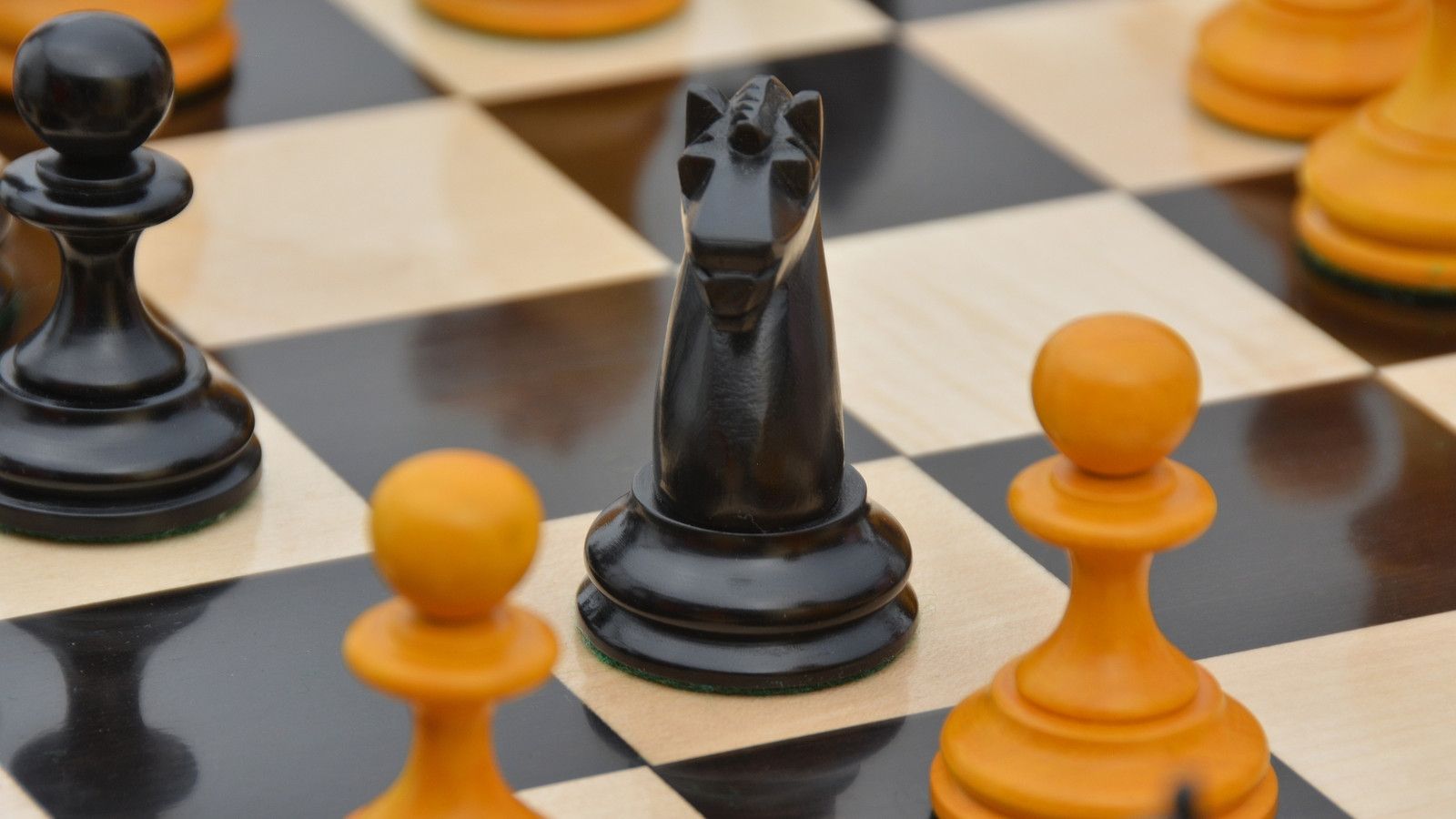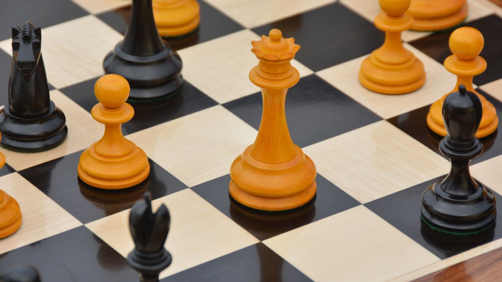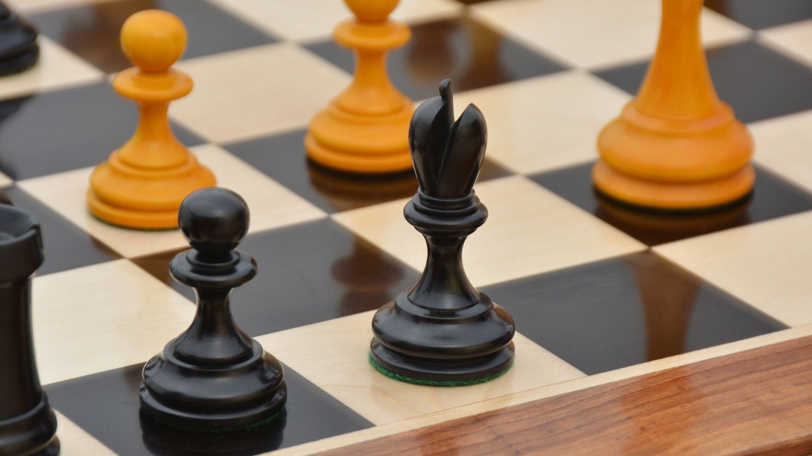 Repro B & Co 1860s Antique Chess Pieces in Ebony / Antiqued Boxwood - 4" King with Board