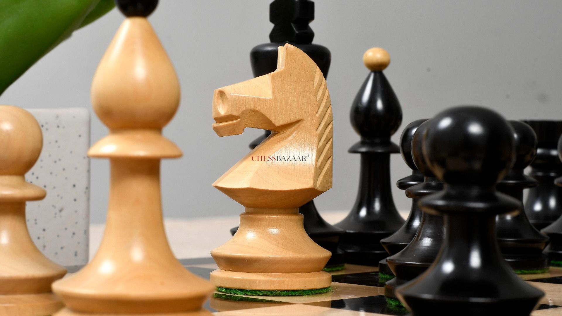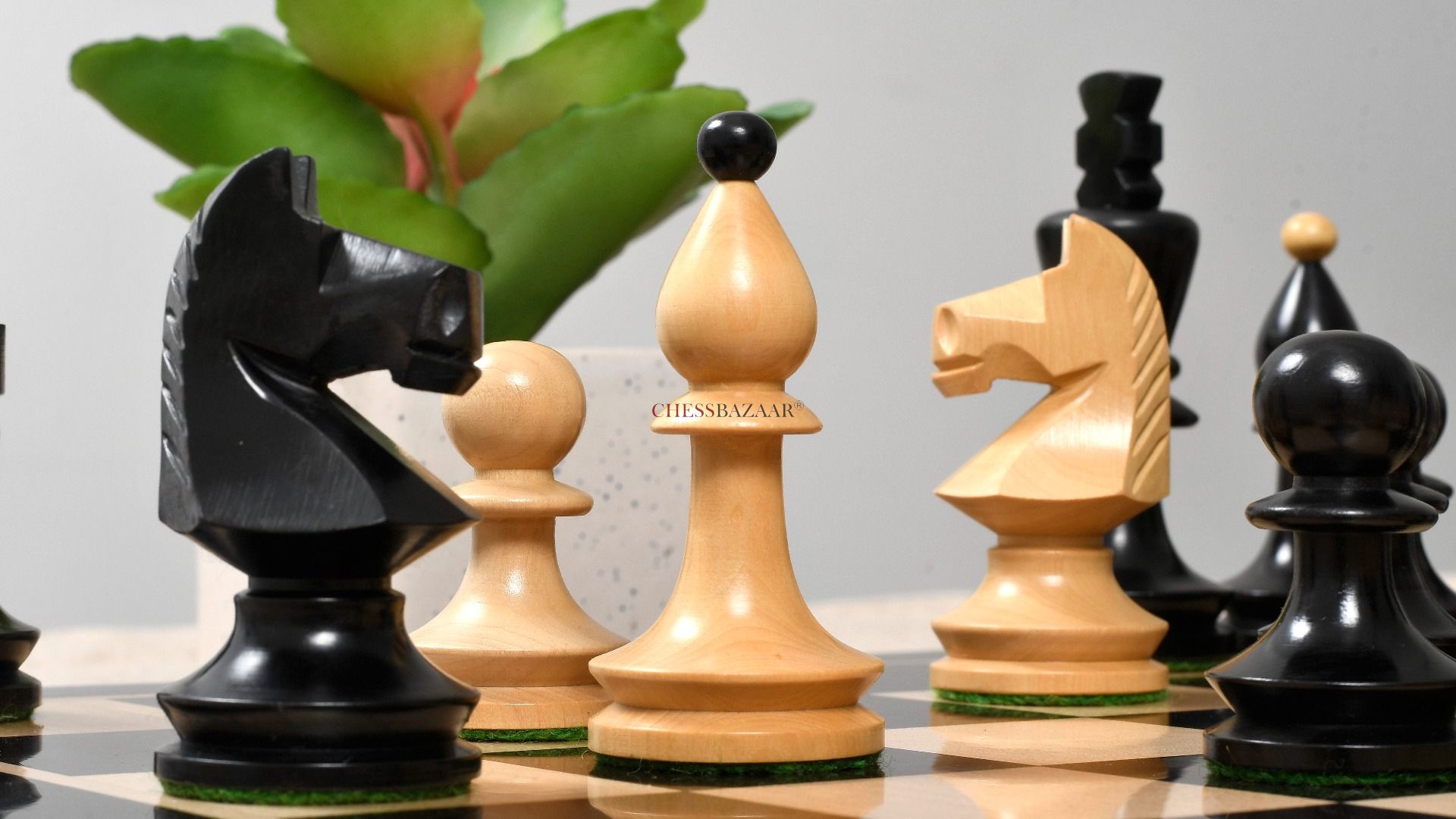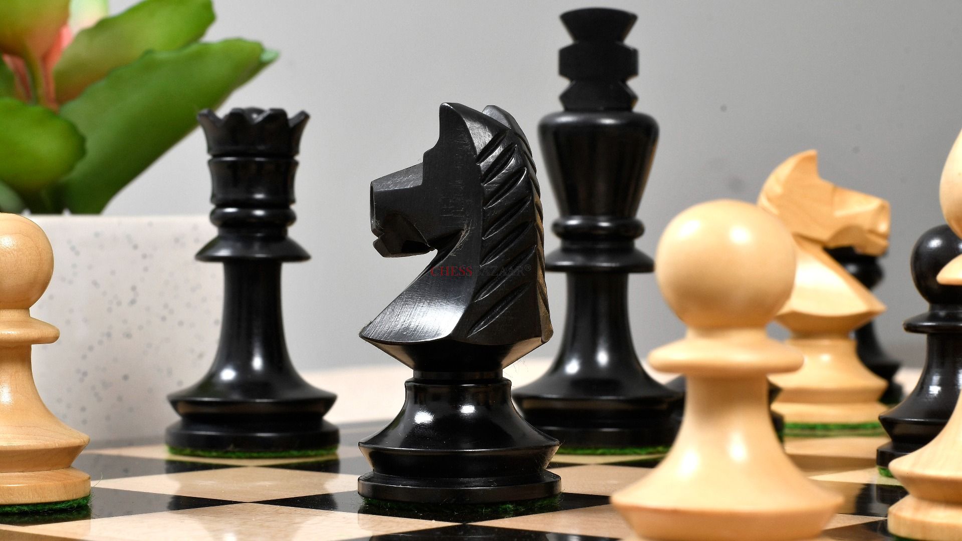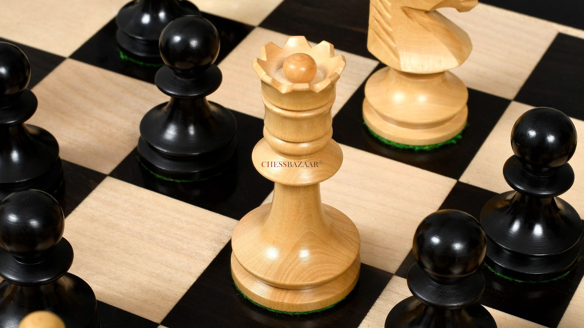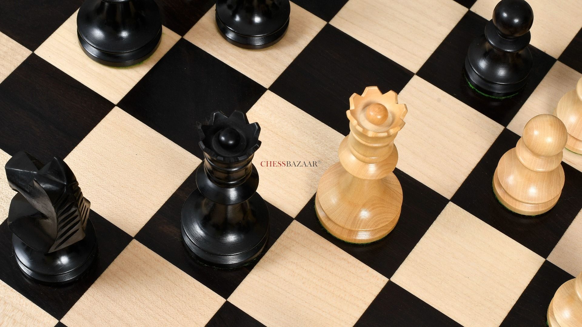 Combo of Reproduced Romanian-Hungarian National Tournament Chess Pieces in Ebonized & Natural Boxwood - 3.8" King with Wooden Chess Board