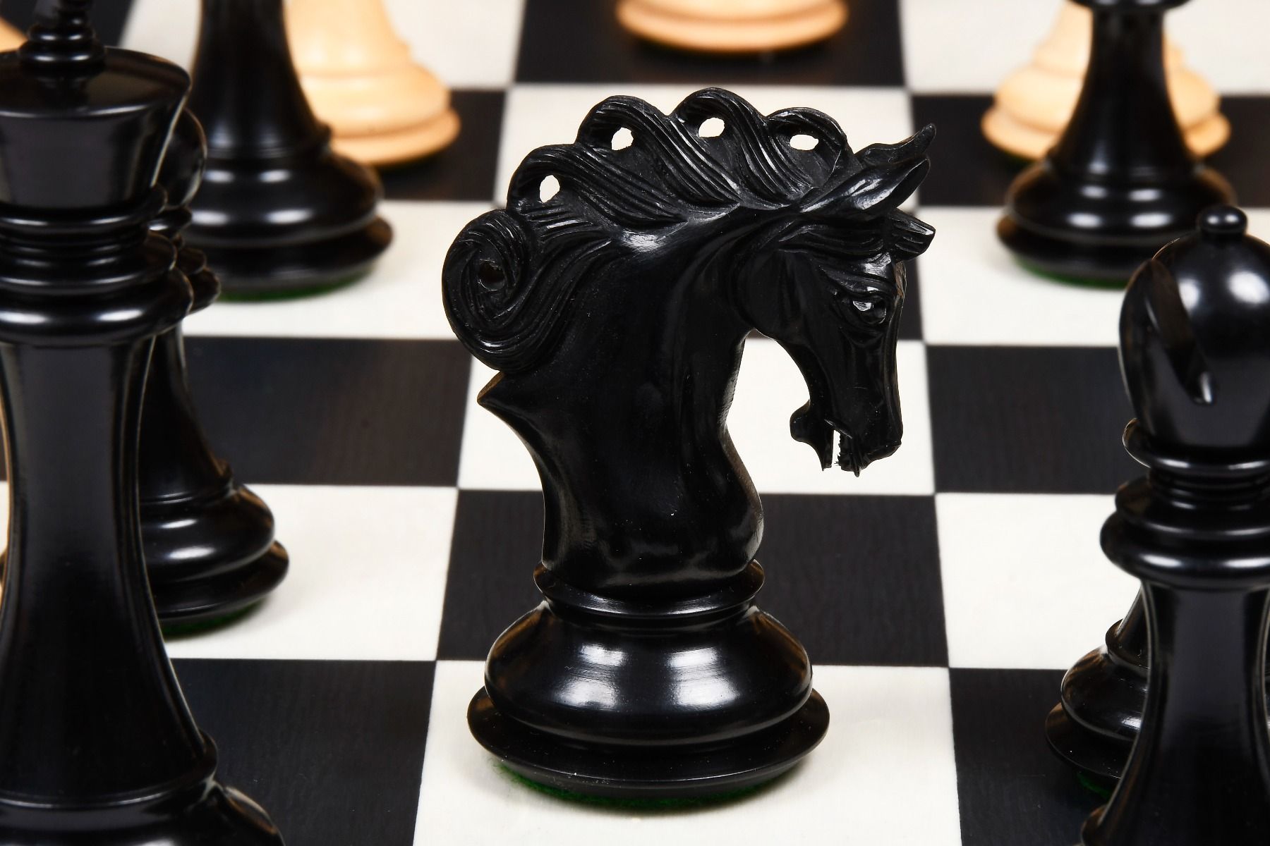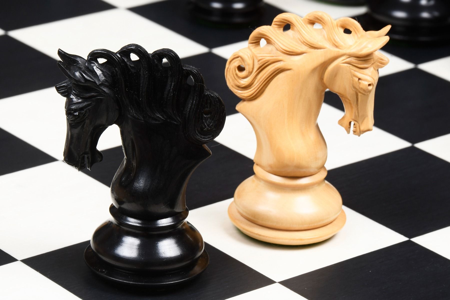 We are pleased to announce THE COMBO OF THE PEGASUS SERIES ARTISAN Staunton Series heirloom quality chessmen exquisitely made from Ebony Wood and natural boxwood. The King proudly stands at 4.5 inches and its base is robust 1.8 inches. This is a classic design featuring the magnificently robust and remarkable knight.