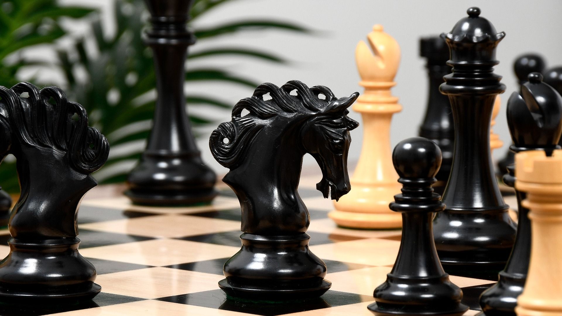 Combo of The Pegasus Series Artisan Staunton Chess Pieces ver 2.0 in Ebony / Boxwood - 4.6" King with Wooden Chess Board