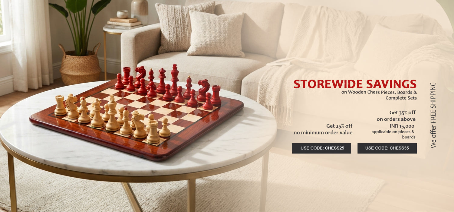 We are among the largest export houses for chess in India through our website chessbazaar and now we have entered the Indian market to offer our Indian audience with the quality products which are also FIDE approved and are for the serious as well as the beginners. Majority of our products are Made in India and we offer FREE shipping* on all your orders. Buy chess set from us and get a more memorable chess playing experience.