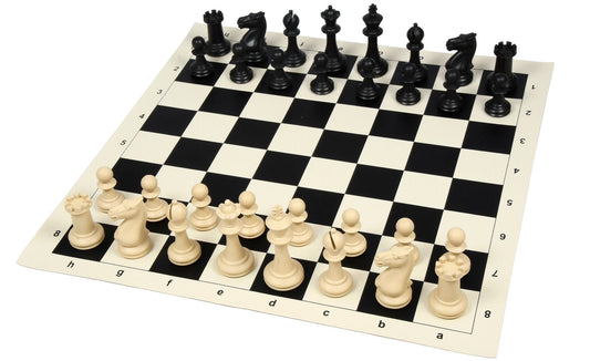 The Study Tournament Plastic Chess Pieces & Roll Up Chess Board Combo - 3.1" King